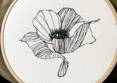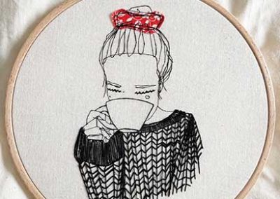 Becca Nicolaides (artist name: Constance Posey) works in pen and hand‑stitched embroidery, transforming sketches into thread‑drawn pieces that capture expression, gesture and emotion. She studied Illustration at the University for the Creative Arts (UCA), earning a BA (Hons).