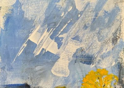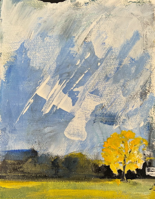 I am exploring the impact of colour and the act of layering to create a sense of impermanence . Clouds fascinate me ; I want to explore the ethereal quality in greater depth with future work.