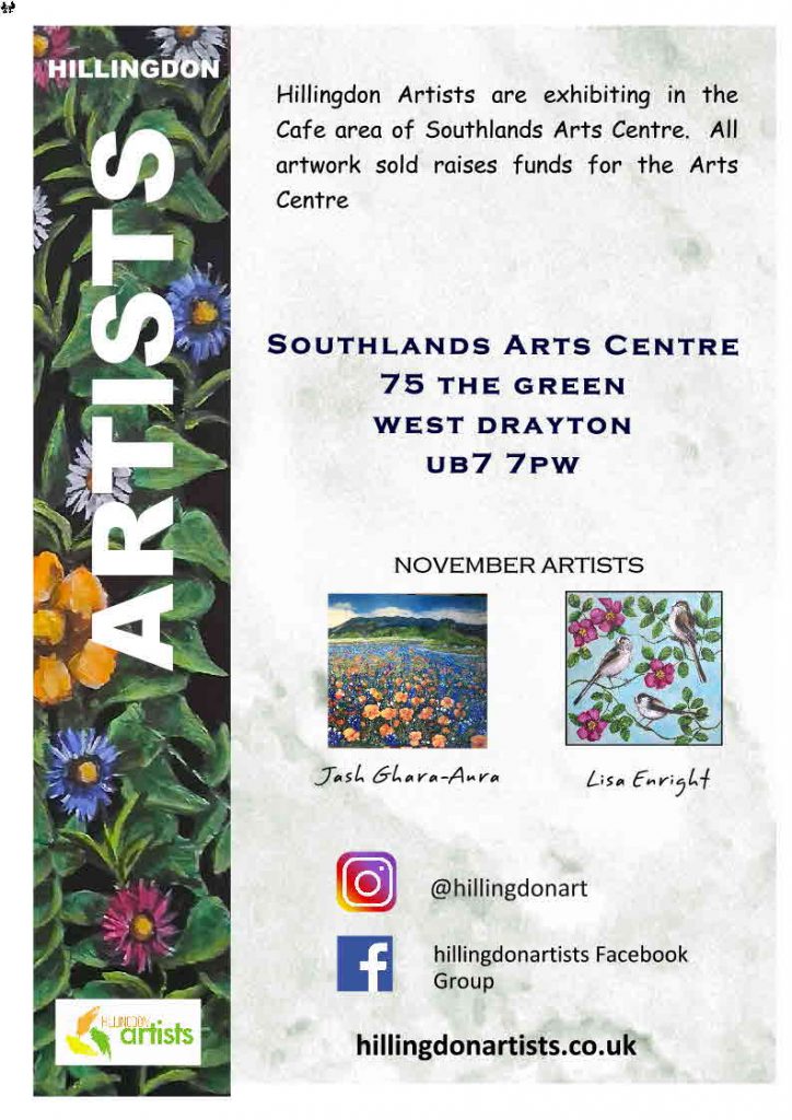 Please find below details of our exhibition at Southlands Arts Cafe. New artists will be exhibiting every month.